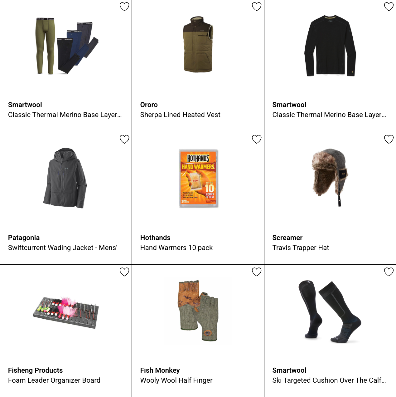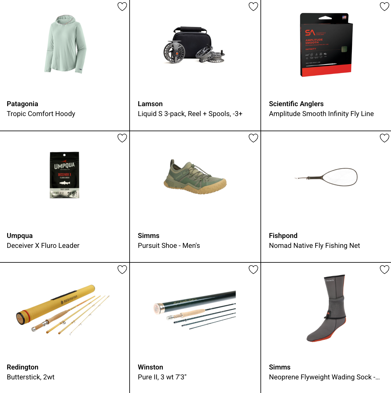 These lists take the guesswork out of process by breaking purchases into activity specific groups (everyday inland/winter/fly tying/saltwater). Still have questions? Shoot us a message at info@newenglandfly.com and we'll chat through your specific needs.