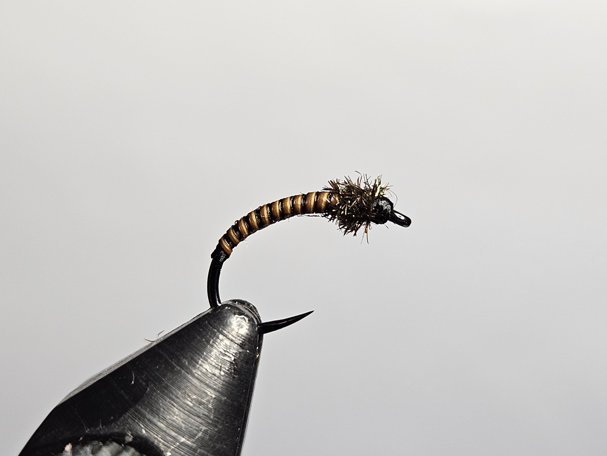 Our favorite midge pattern, this half-stripped peacock quilled midge imitation is hyper realistic in its segmentation and size. Best fished as multiple droppers, or a single trailing nymph behind a larger attractor when the hatches are nowhere to be found, it can also make a decent free caddis nymph when fished towards the end of shallow freestone riffles.