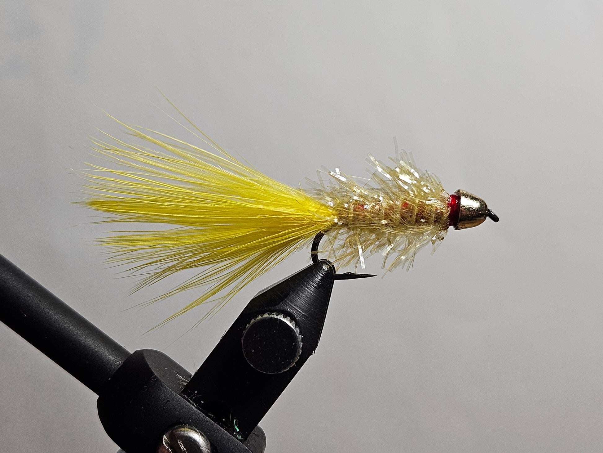 Tied with a thinner tungsten conehead, the underbody color can be changed to imitate wounded baitfish (red) or leeches (black/green).